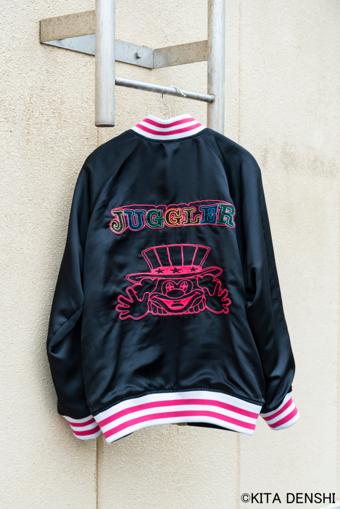 「JUGGLERリバーシブルスカジャン by 福島県 川俣シルク」は、福島県いわき市で田植えから稲刈りまでの米作りを体験する「米(マイ)ジャグラープロジェクト」や、プロサッカークラブ「いわきFC」とのオフィシャルパートナー契約など、東日本大震災の復興支援を行う株式会社北電子の本プロジェクトへの賛同の元に、製造される特別なプロダクトです。
